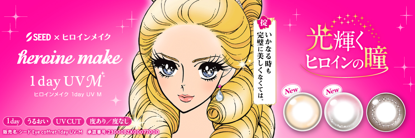 この度『ヒロインメイク 1day UV M』に「光のブラウン」と「煌めきピンク」の新色2色が登場しました。『ヒロインメイク 1day UV M』は、「誰よりも輝く大きな瞳になりたい」というあなたの夢を叶えるため、株式会社シードと株式会社伊勢半のメイクアップブランド「ヒロインメイク」が共同開発したカラーコンタクトレンズです。